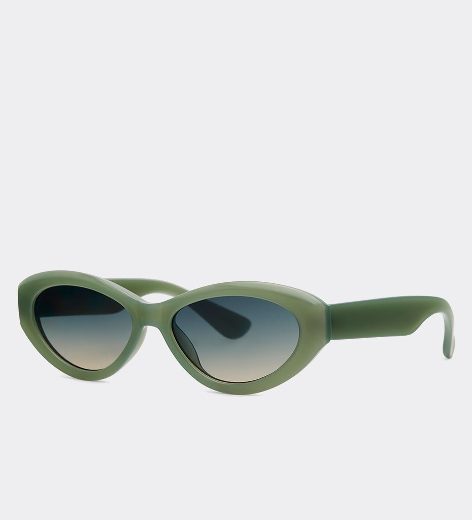 Okulary przeciwsłoneczne damskie w klasycznym, lekkim kształcie, idealne do codziennego noszenia w mieście, podczas wakacji oraz w umiarkowanym słońcu. Zielone oprawki nadają świeżego, wyrazistego charakteru i pasują do różnych stylizacji.