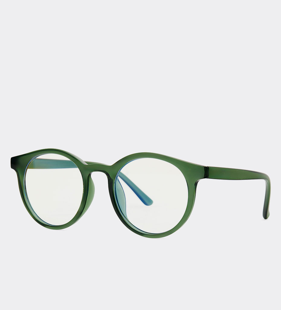 - Okrągłe okulary Simon Green z filtrem Blue Light to miejskie must-have. Zielone oprawki nadają świeżości i charakteru, chronią oczy przed ekranem, a codzienna stylizacja zyskuje odważny, nowoczesny akcent.