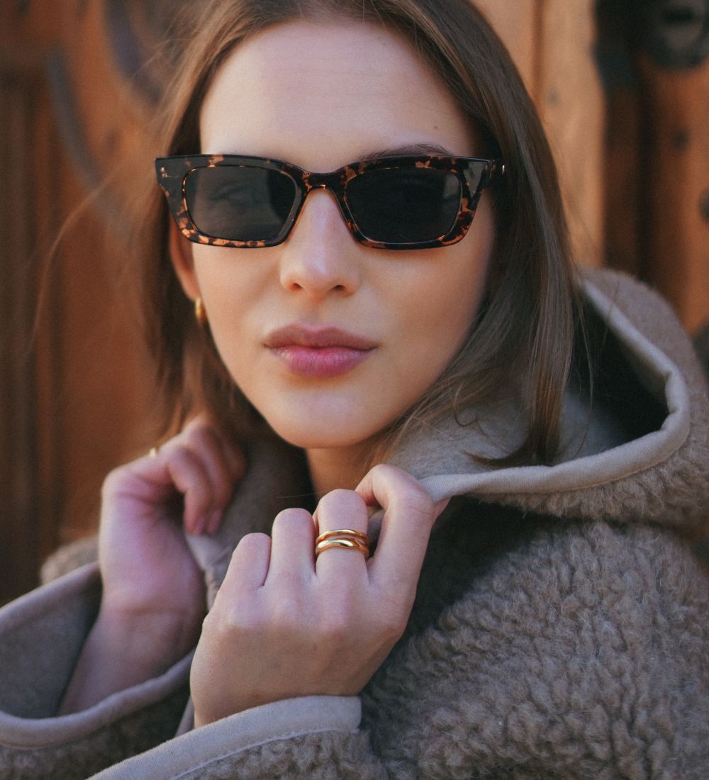 Prostokątne bursztynowe drobna twarz okulary przeciwsłoneczne Portland Amber