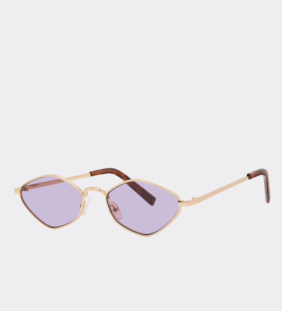 - Damskie prostokątne okulary Breeze Violet w stylu retro z cienkimi złotymi oprawkami i fioletowymi szkłami. Lekka, elegancka konstrukcja tworzy modowy, vintage look, który dodaje charakteru każdemu outfitowi.