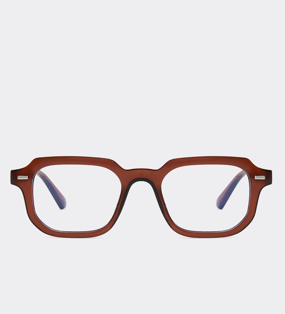 • Bennett Brown to prostokątne okulary Blue Light Blocker, które chronią oczy przed ekranami. Brązowe oprawki dodają elegancji i nowoczesnego charakteru, świetnie pasując do codziennych, miejskich i biurowych outfitów.