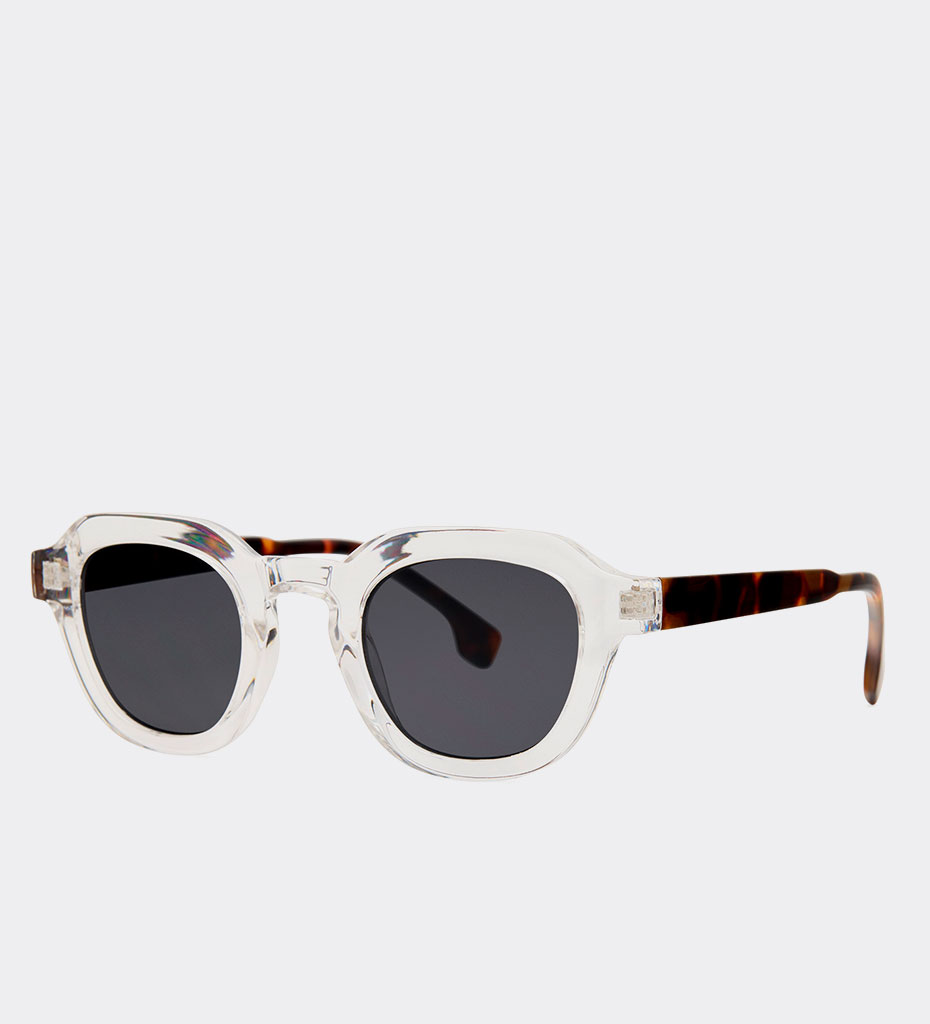Okulary przeciwsłoneczne unisex przeznaczone do codziennego użytkowania w mieście, na spacerach oraz podczas prowadzenia samochodu w pełnym słońcu. Model łączy nowoczesną, przezroczystą oprawkę z lekką konstrukcją, zapewniając komfort noszenia zarówno dla kobiet, jak i mężczyzn.
